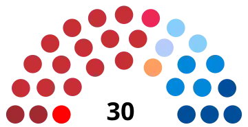 | Partis | Votes | % | +/- | S. | +/- | Coalition | ||