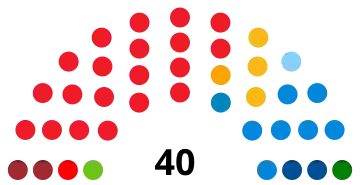 | 40 sièges du conseil régional (Majorité absolue : 21 sièges) | ||||||||||||||