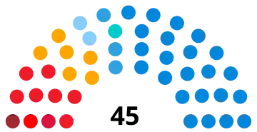 La liste du président élu reçoit d'emblée une prime majoritaire de 7 sièges portant sa part des sièges à un nombre compris entre 60 et 65% du total. Les sièges sont ensuite repartis à la proportionnelle aux différentes listes ayant franchi le seuil électoral, et à leurs candidats en fonction des votes préférentiels qu'ils ont recueillis. Le seuil de 4% est abaissé à 2% pour les listes se présentant au sein d'une coalition. Par ailleurs, le président élu ainsi que le candidat arrivé en seconde position deviennent de droit membres du conseil, ce qui porte le total de conseillers à 45.