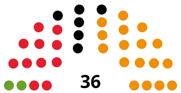 | 36 sièges du Landtag (Majorité absolue : 19 sièges) | ||||||||||||||