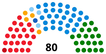 | Partis | Votes | % | +/- | S. | +/- | Coalition | ||