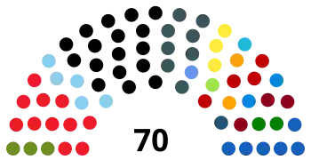 | 70 sièges du conseil régional (Majorité absolue : 36 sièges) | ||||||||||||||