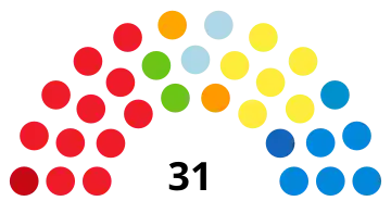 La liste du président élu reçoit d'emblée une prime majoritaire portant sa part des sièges à un nombre compris entre 60 et 65 % du total. Les sièges sont ensuite repartis à la proportionnelle aux différentes listes ayant franchi le seuil électoral, et à leurs candidats en fonction des votes préférentiels qu'ils ont recueillis. Le seuil de 4 % est abaissé à 2 % pour les listes se présentant au sein d'une coalition. Par ailleurs, le président élu ainsi que le candidat arrivé en seconde position deviennent de droit membres du conseil, ce qui porte le total de conseillers à 31.