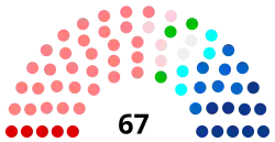 Si une liste a recueilli la majorité absolue des suffrages exprimés au premier tour, le quart des sièges lui est attribué. Le reste est réparti à la proportionnelle suivant la règle de la plus forte moyenne. Une liste ayant obtenu moins de 5 % des suffrages exprimés ne peut se voir attribuer un siège[2]. Sinon on procède à un second tour où peuvent se présenter les listes ayant obtenu 10 % des suffrages exprimés[2]. La composition de ces listes peut être modifiée pour comprendre les candidats ayant figuré au premier tour sur d’autres listes, sous réserve que celles-ci aient obtenu au premier tour au moins 5 % des suffrages exprimés et ne se présentent pas au second tour[3]. À l’issue du second tour, les sièges sont répartis de la même façon[2].