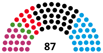 | 87 députés du Landtag Majorité absolue : 44 députés | ||||||||||||||