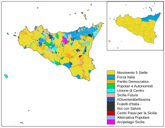 Giancarlo Cancelleri 722 555 34,65 1 Mouvement 5 étoiles (M5S) 513 359 26,67 en augmentation 11,78 19 en augmentation 4 20