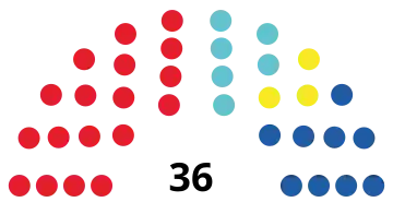 | 36 sièges du Landtag (Majorité absolue : 19 sièges) | ||||||||||||||