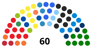 La liste du président élu peut recevoir d'emblée une prime majoritaire égale à la moitié des sièges si celui ci réunit au moins 25 % des suffrages. La prime monte à 55 % des sièges pour un résultat entre 25 et 40 % des voix, et à 60 % s'il réunit plus de 40 % des voix. Les sièges restants sont ensuite repartis à la proportionnelle entre les différentes listes ayant franchi le seuil électoral, et à leurs candidats en fonction des votes préférentiels qu'ils ont recueillis. Le seuil de 5 % est élevé à 10 % pour les listes se présentant au sein d'une coalition. Par ailleurs, le candidat à la présidence arrivé en seconde position devient de droit membre du conseil, ce qui porte à 60 le total de conseillers[ 1] .