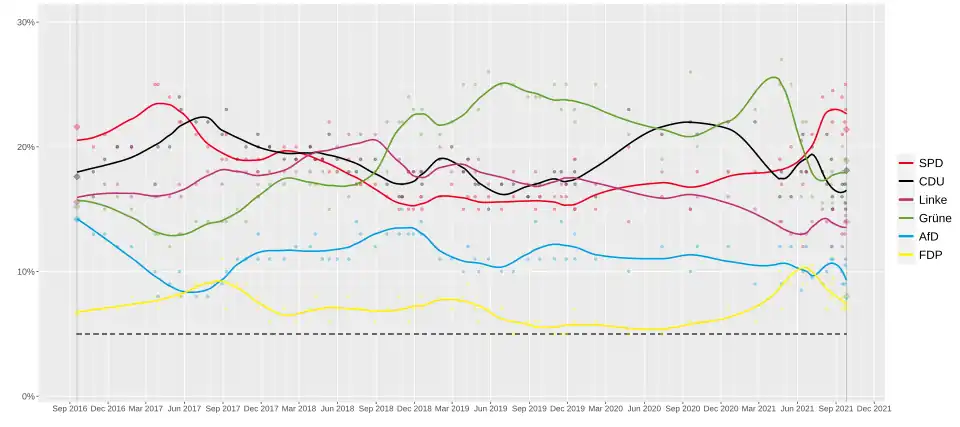 | Forsa | 13/08/2021 | 17 % | 21 % | 21 % | 7 % | 14 % | 10 % |