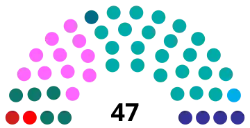 | 47 députés de l'Assemblée législative (Majorité absolue : 24 députés) | ||||||||||||||