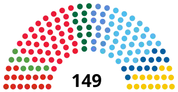 Les assemblées ou conseils des onze comtés et neuf régions sont composés de 45 à 149 sièges en fonction de leurs populations, pour un total de 1 662 conseillers renouvelés tous les quatre ans au scrutin proportionnel plurinominal selon la méthode de Sainte-Laguë . Les scrutins sont organisés le même jour que les législatives et les municipales[ 1] .