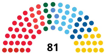 Les assemblées ou conseils des onze comtés et neuf régions sont composés de 45 à 149 sièges en fonction de leurs populations, pour un total de 1 662 conseillers renouvelés tous les quatre ans au scrutin proportionnel plurinominal selon la méthode de Sainte-Laguë . Les scrutins sont organisés le même jour que les législatives et les municipales[ 1] .
