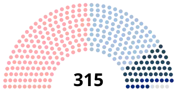 | Bloc national républicain | 21 | 16 | 99 | Conservateurs | 8 | 3 | 28 | ||