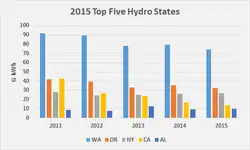 - ↑ (en) Record precipitation, snowpack in California expected to increase hydro generation in 2017, EIA, 22 mars 2017.