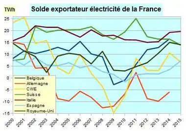- ↑ (en) Energy Statistics Data Browser - Electricity imports vs. exports, France, 1990-2023, Agence internationale de l'énergie, 21 décembre 2023.