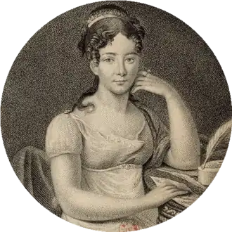 Élisabeth de Vaudey, fille du général Jean Le Michaud d'Arçon, est issue d'une famille de petite noblesse. Mariée à l'âge de 16 ans à M. Barberot de Vellexon de Vaudey, lequel émigre un an après cette union, elle devint en 1804 dame du palais de l'Impératrice[4]. Elle est décrite par ses contemporains comme « une très jolie personne, spirituelle, musicienne, voix sympathique, très instruite, mais aussi très intrigante[5] ».