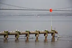 Un système de traitement des eaux usées rejette l'effluent traité dans un plan d'eau à partir d'un émissaire. Un émissaire marin peut être transporté à plusieurs kilomètres au large, pour se décharger par des buses à l'extrémité d'un épandeur ou d'une structure en forme de T. Les exutoires peuvent également être construits comme un tunnel d'exutoire ou un tunnel sous-marin et rejeter les effluents dans l'océan via une ou plusieurs colonnes montantes marines avec buses.