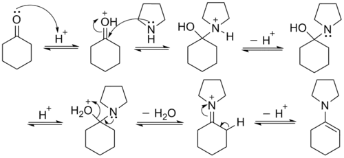 - ↑ Stork Enamine Reaction. G. Stork et al., J. Am. Chem. Soc. 76, 2029 (1954)
