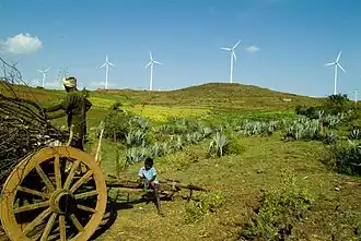 L'énergie éolienne devient peu à peu une source d'énergie importante en Inde : l'éolien fournissait 4,2 % de la production électrique indienne en 2023.