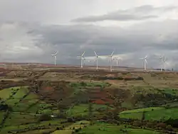 - Meentycat : mis en service dans le comté de Donegal en 2004 ; 38 turbines, 72,4 MW[31] ;