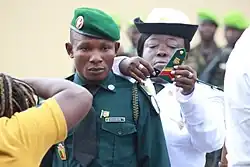 Légionnaires en uniforme. Epaulettes rouges à parement vert.