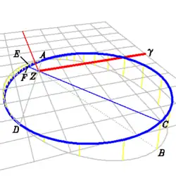 - une ellipse avec le grand axe vertical, avec le centre de la Terre comme foyer proche