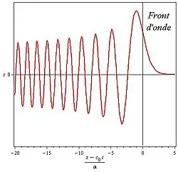 L'onde est formée par un front se propageant avec la vitesse de groupe, suivi d'ondes dont l'amplitude décroît comme