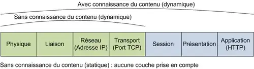 Le routage à la couche 7, ou couche application selon le modèle OSI, permet d'effectuer une distribution des requêtes en prenant en compte le contenu HTTP de cette requête, fournissant ainsi des stratégies de routage plus flexibles. En contrepartie, la charge générée sur le répartiteur est plus importante[15],[44],[25].