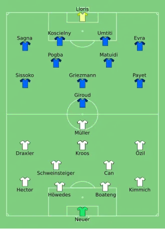 | Kroos Müller Özil Draxler Schweinsteiger Hummels Kimmich Boateng Hector | Tirs au but 6 - 5 | ||||