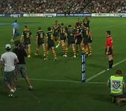 En 1997, l'équipe australienne de la Super League joua avec un maillot vert et un «V » or et bleu.