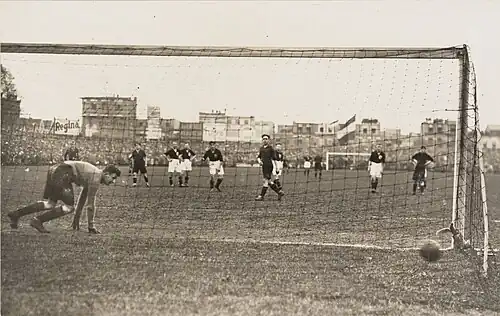 - ↑ (nl) « SPORT EN SPEL. INTERN. VOETBALWEDSTRIJD. », sur delpher.nl, De Maasbode, (consulté le ).