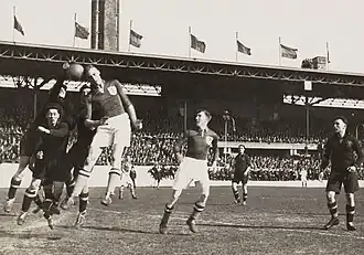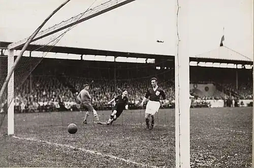 - ↑ (nl) « Voetbal. ENGELAND VERSLAAT BELGIË MET 4—1. », sur delpher.nl, De Telegraaf, (consulté le )