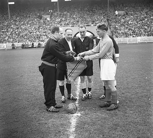 - ↑ (nl) « Belgisch elftal voor Wenen », sur delpher.nl, Het vrije volk : democratisch-socialistisch dagblad, (consulté le )