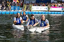 Une partie de l’équipe aux championnats du monde de kayak-polo 2014.
