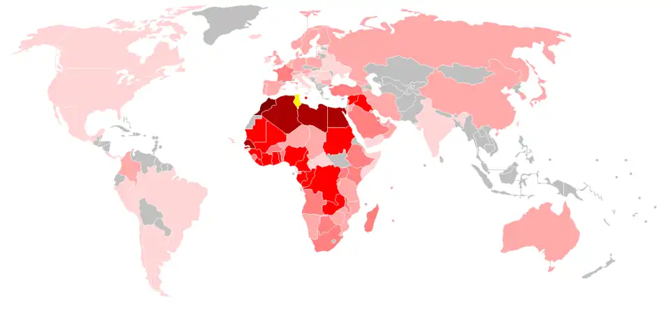 L'année suivante, l'équipe réussit à se qualifier pour la CAN 2006 mais ne réussit pas à défendre son titre continental en Égypte. En phase de poules, l'équipe bat la Zambie (4-1)[214] et l'Afrique du Sud (2-0)[215] avant de subir une lourde défaite (0-3) face à la Guinée. L'équipe se qualifie pour les quarts de finale et, après un match nul face au Nigeria (1-1), la Tunisie est éliminée aux tirs au but (6-5)[216]. En mai, Lemerre emmène son équipe dans un camp d'entraînement en Suisse, où elle joue des matchs d'entraînement contre des clubs locaux. Lors du premier match, la Tunisie bat le FC Serrières (2-0), avec des buts des défenseurs Karim Haggui et Alaeddine Yahia. Le deuxième match se termine également par une victoire contre le FC Columbier (4-0). Lorsque l'équipe revient au pays, elle participe à la coupe LG, dans laquelle elle bat la Biélorussie sur le score de 3-0[217]. Dans le match final, la Tunisie échoue face à l'Uruguay (1-3) après une séance de tirs au but, sans but dans le temps réglementaire[218].