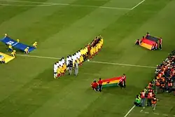 En Allemagne les Black Stars passent le premier tour en battant, contre toute attente, la République tchèque (2-0, grâce à des buts d'Asamoah Gyan dès la 2e minute de jeu puis de Sulley Ali Muntari à la 82e minute), puis les États-Unis, sur le score de 2-1 (buts de Haminu Draman et Stephen Appiah, sur penalty). Ils ne perdent que leur premier match de poule contre les futurs champions du monde italiens (0-2, buts d'Andrea Pirlo et de Vincenzo Iaquinta). Seule nation africaine à se qualifier pour les huitièmes de finale, le Ghana s'incline contre le Brésil, tenant du titre (0-3, buts de Ronaldo, Adriano et Zé Roberto). Le slogan du groupe était : Black Stars Monko, Yån Wiase Mu Nsroma en français : « Allez les Black Stars, les stars de notre monde ».