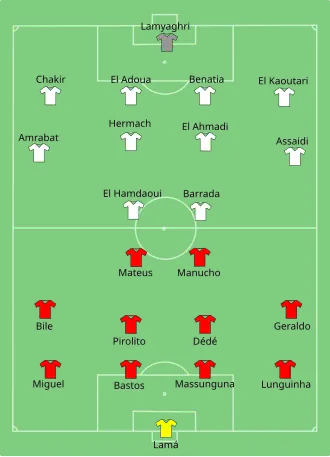 Durant le premier quart d'heure, de nombreuses attaques marocaines étaient intéressantes, notamment celles d'El Ahmadi (12e min), Assaidi (15e min) et El Hamdaoui (16e min) [10].