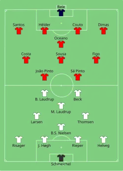 Pour finir, le Portugal surclasse l’Allemagne (3-0, triplé de Sergio Conceição)[11] et se présente en prétendant pour la victoire finale.