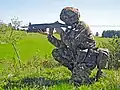 GP90 (5,56 × 45 mm OTAN) | Tireur de précision désigné dans les troupes d'infanterie, utilisant le F ass 90, équipé d'une lunette 4x24 Zielfernrohr de Kern, avec une portée prévue de 600 m. |
