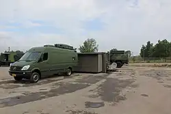 Camion lourd porteur 6X6 non protégé porte shelter équipé d'un système qui permet, en liaison avec l'armée de l'Air et de l'Espace, de commander la composante sol-air mais également de coordonner l'utilisation de la troisième dimension par les autres intervenants de l'armée de Terre (artillerie, sol-sol, hélicoptères, drones) | ![]() |