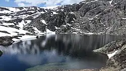 L'étang se trouve au pied du versant sud granitique du pic des Trois-Seigneurs.