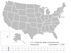La déclaration d'indépendance est proclamée le , dans laquelle les treize colonies se fédèrent pour former les États-Unis d'Amérique, la première nation décolonisée du monde[11],[12], reconnue par la Grande-Bretagne à la fin de la guerre en 1783. L'histoire contemporaine des États-Unis est marquée par la rivalité entre New York et Philadelphie, puis par la conquête de l'Ouest, les guerres indiennes et la guerre de Sécession. La fin de l'esclavage des Afro-Américains en 1865 est suivie d'un siècle de ségrégation raciale. Au début du XXe siècle, le pays devient une puissance industrielle qui a les moyens d'intervenir à l'extérieur de ses frontières. Il participe ainsi à la Première Guerre mondiale puis subit la Grande Dépression au début des années 1930. Vainqueurs de la Seconde Guerre mondiale aux côtés des Alliés, les États-Unis sont une puissance nucléaire depuis 1945. Devenus superpuissance mondiale, ils sont en rivalité avec le système communiste de l'URSS et de ses alliés pendant une quarantaine d’années : la « guerre froide ».