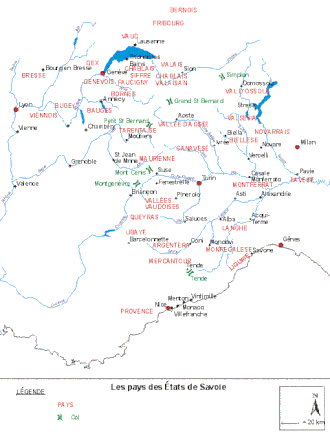 Régions ayant temporairement fait partie des États de Savoie (D'autres régions en ont fait partie plus brièvement) :
