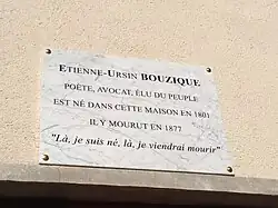 Étienne Ursin Bouzique naît à Châteauneuf-sur-Cher le 18 pluviôse an VIII[2], fils de Jean Étienne Bouzique, propriétaire cultivateur, et de Jeanne Souchois. Il meurt, célibataire, dans la même ville, le [3]. Sur sa maison natale est apposée une plaque commémorative où il est qualifié "poète, avocat, élu du peuple".