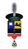 Parti : au I coupé d’azur au pavillon turc d’argent et d’or au cheval galopant de sable, au II de sable au palmier terrassé d’argent le parti soutenu d’une champagne de gueules chargée du signe des chevaliers.[13].