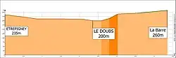 Le village d'Étrepigney qui a été construit sur une terre gagnée sur la forêt se trouve à une altitude de 240 mètres alors que la plaine du Doubs se trouve à 210 mètres.