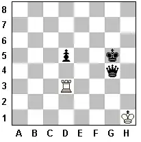 Solution: 1.Ra1! et si 1...Dxc2 pat. La solution continue avec 1...Rh6 2.Dd2+ Rh7 3.Dc2! nulle. Les noirs ne peuvent pas éviter la répétition de la position et les blancs obtiennent donc la nullité. Le terme utilisé pour ce genre de position est nulle positionnelle.