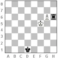 Les Blancs peuvent cependant annuler, en profitant du fait que leur roi peut se déplacer dans deux directions à la fois : vers le pion noir et vers son propre pion.