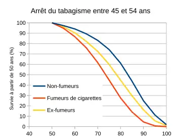 Une conclusion majeure de l'étude est que le tabagisme diminue l'espérance de vie de 10 ans, et que plus de 50 % des fumeurs meurent d'une maladie connue pour être liée au tabagisme. Cependant, ceux qui arrêtent de fumer à 60, 50, 40 ou 30 ans augmentent leur espérance de vie de, respectivement, environ 3, 6, 9 ou 10 ans[1]. Les fumeurs ayant arrêté de fumer avant l'âge de 30 ans ont donc la même espérance de vie que les non-fumeurs.