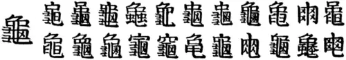 - Les formes primitives des caractères, telles qu'on les rencontre sur les inscriptions sur bronze ou dans les inscriptions oraculaires[3].